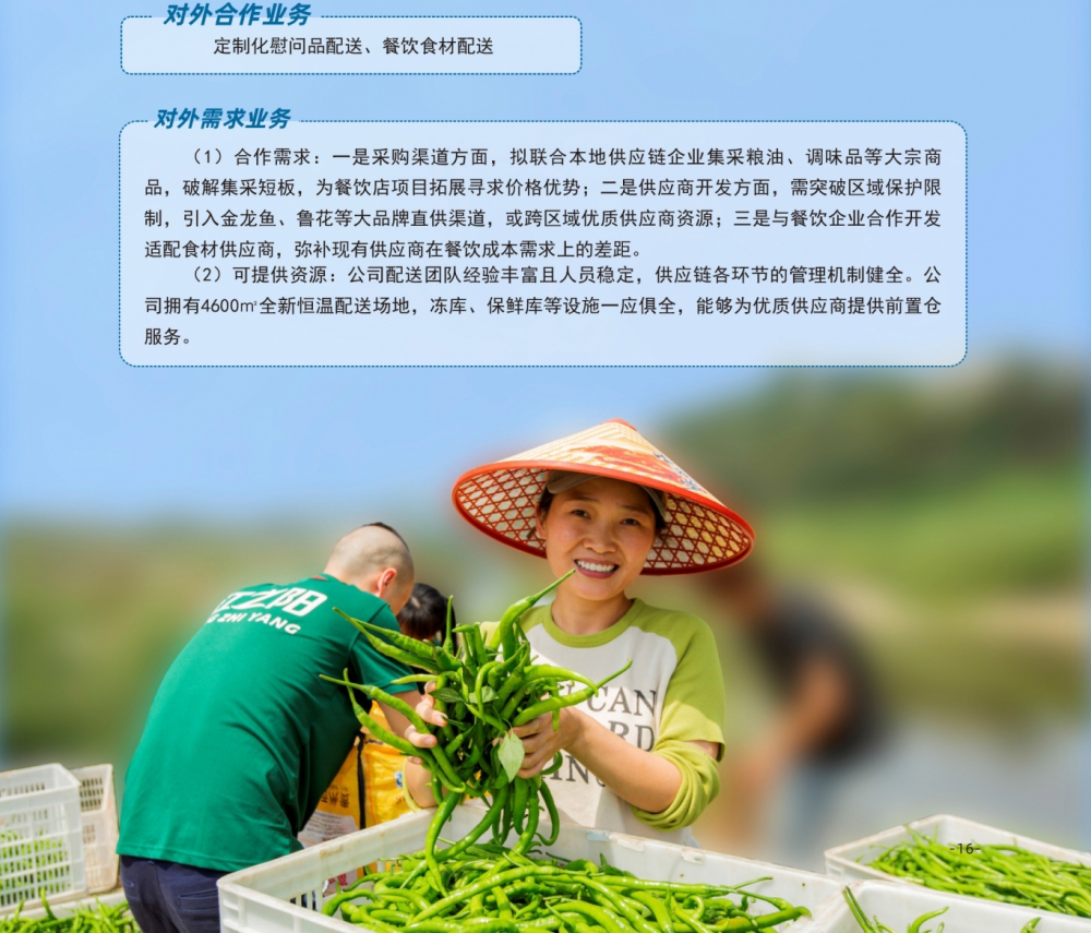 泸州江之阳配送有限公司主营学校、政企单位餐饮食材采购与配送,工作亮点突出。严把服务关:以 “校园餐”为核心,建立1小时售后应急机制与每日问题清零制度,合作单位超100家,覆盖67所公办校(园)、34家行政企事业单位及消防重点单位,日均服务超10万人次,配送规模持续扩大。严把采购关:赴多地考察,与大型农批市场、基地建立稳定合作,优化供应商管理,保留165家优质供应商、清退18家不合格者,今年配送价同比降约4%,源头降本成效显著。严把质量关:落实“四个最严”要求,健全三级品控与排查机制,专设食安部门联动检测中心,累计检测食材20796批次;配送车辆全流程监控,开展500余人次食安培训,筑牢安全底线。此外,以“以购代帮”助力乡村振兴,与10余个乡镇直采合作,近两年采购农产品103.5万斤,帮扶120余家农户解滞销难题,彰显国企担当。