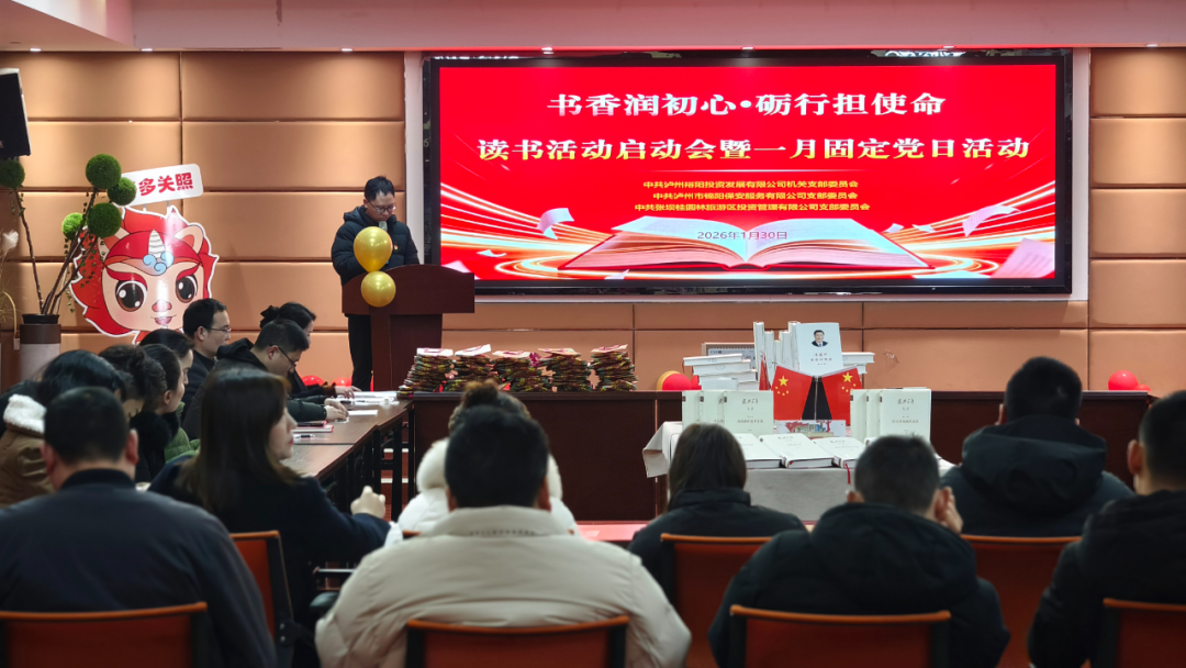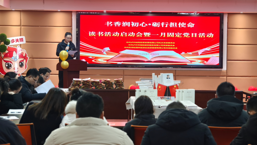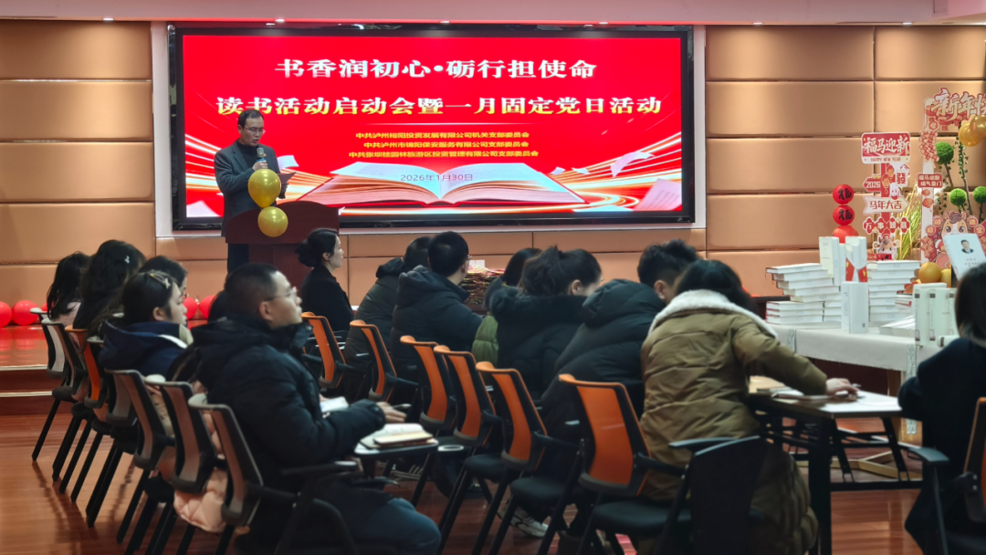 为深入推进学习型党组织建设,引导广大党员在阅读中坚定理想信念、提升履职能力,1月30日下午,中共泸州裕阳投资发展有限公司机关支部委员会、中共泸州市锦阳保安服务有限公司支部委员会、中共张坝桂圆林旅游区投资管理有限公司支部委员会,于江阳区图书馆联合举办“书香润初心·砺行担使命”读书活动启动仪式。