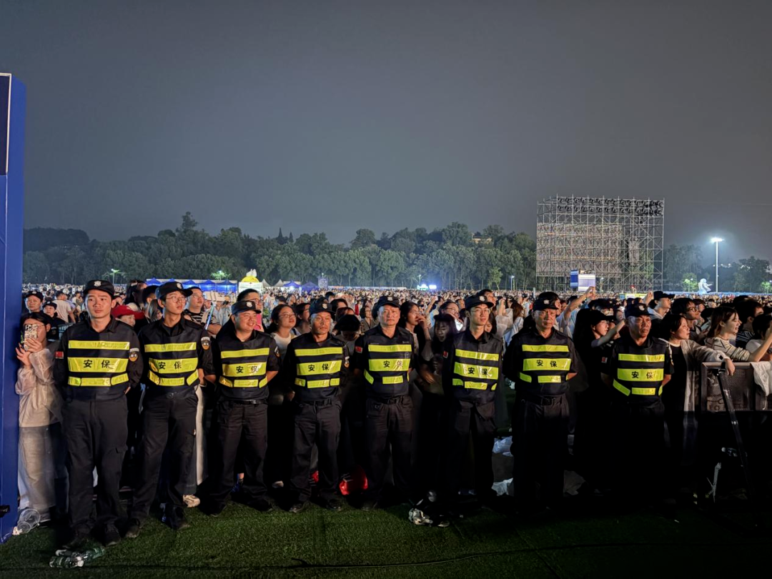锦阳保安公司面对音乐节人流密集、区域广阔、时段较长等复杂挑战,科学部署、精准施策。活动期间累计投入安保力量5000余人次,实现“全程、全域、无死角”值守。成功处置翻墙、闯卡等扰乱秩序行为10余起,抓获票贩2名并移交公安机关;协助转移身体不适观众11名,处理应急事件20余起;暖心服务乐迷,找回手机、身份证等物品20余件。从入场安检到明星守护,从区域巡逻到夜间值守,以专业化能力和人性化服务,保障活动安全有序,彰显国企责任担当。